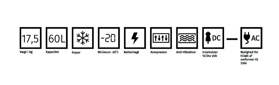 Q65 heeft een inhoud van 60L, een gewicht van 17,5 kg en vriest tot -20°C.