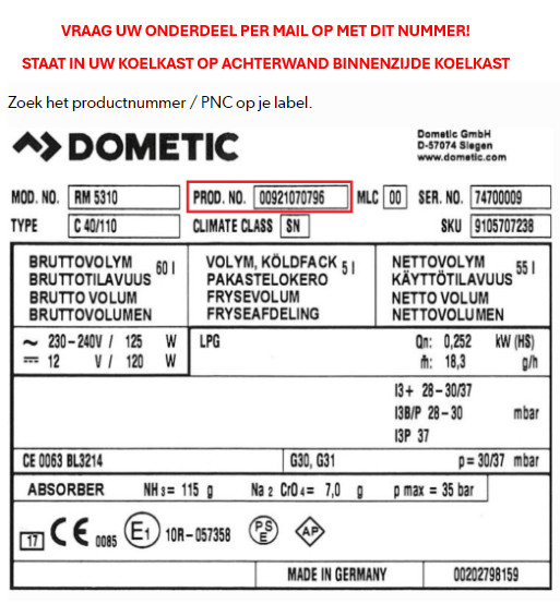 VRAAG UW KOELKAST ONDERDELEN OP PER MAIL MET UW PRODUKTNUMMER