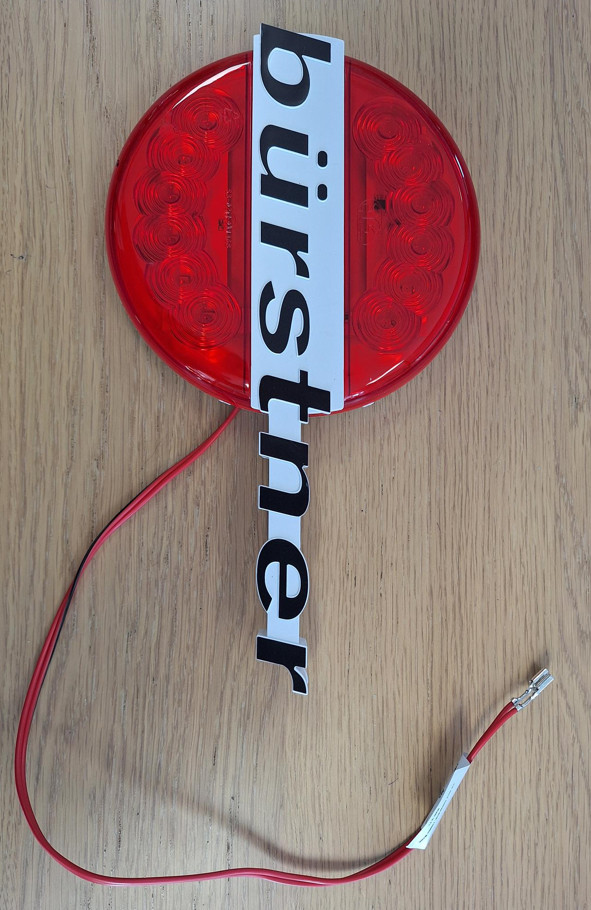 Ronde 3e remlicht met Burstner logo erdoorheen. plakstrip aan achterkant. met snoer 50cm