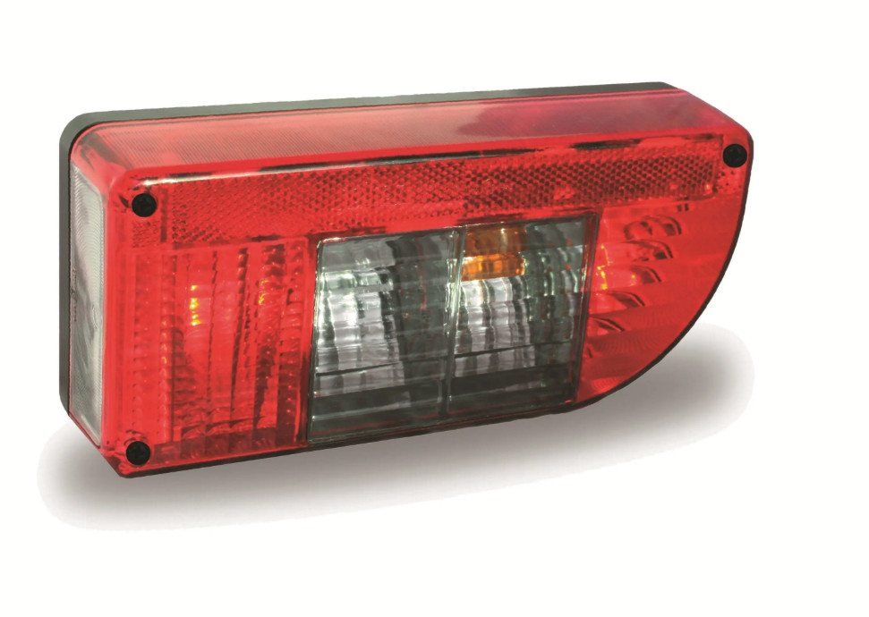 Opbouw achterlicht met remlicht, knipperlicht, kentekenverlichting, mistlicht, achteruitrijlicht en reflector.