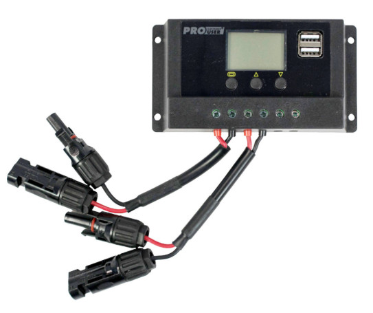 Het opvouwbare zonnepaneel is voorzien van een laadstroomregelaar van 10A PWM technologie.