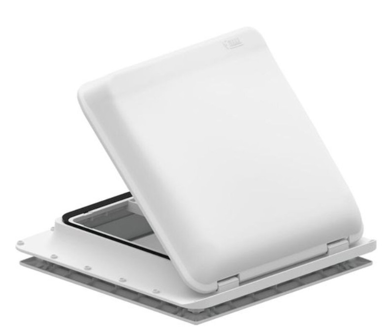De Fiamma Vent is een dakluik van 40x40cm zonder motor voorzien van permanente luchtroosters en vliegengaas.
