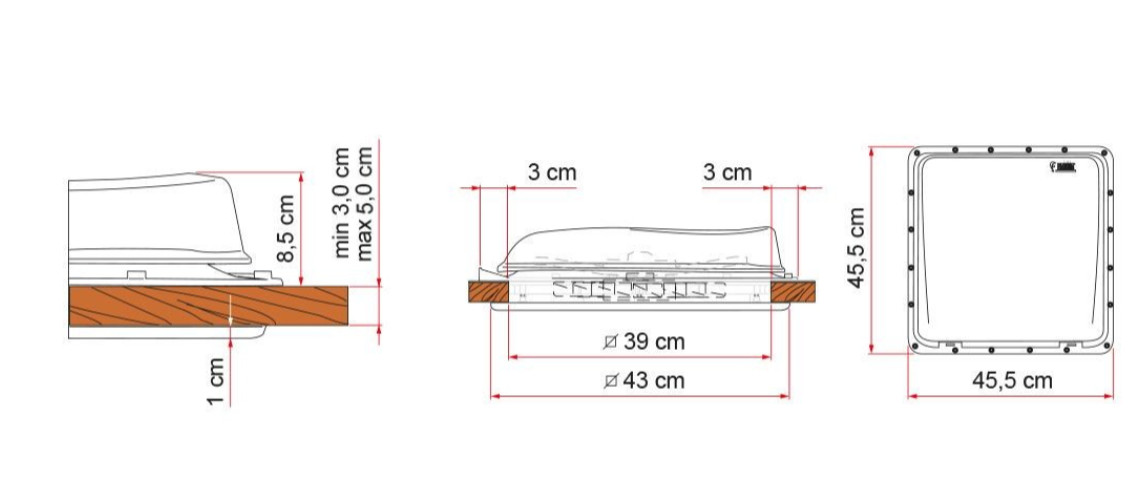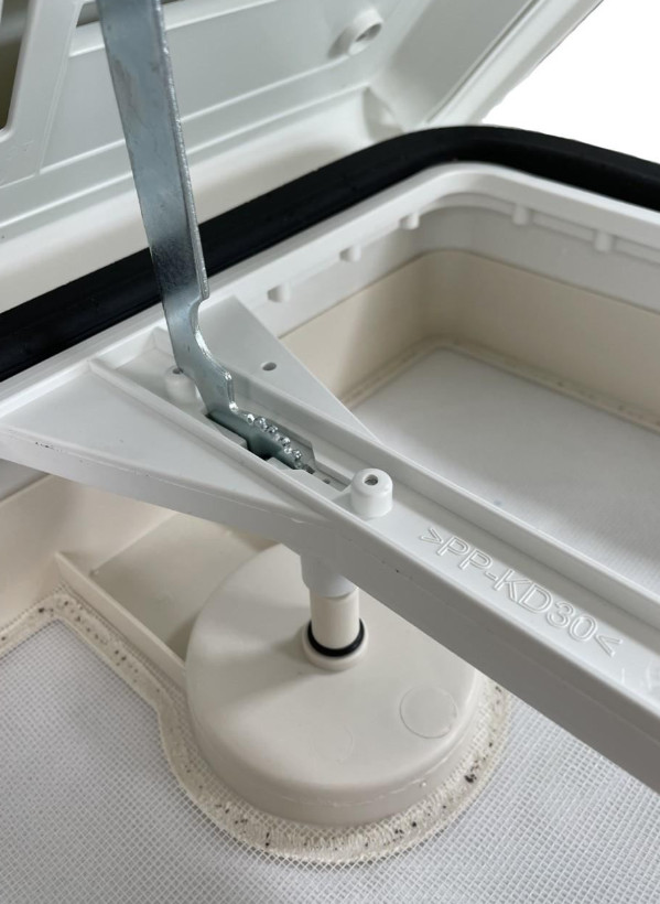 Hij is uitwisselbaar met oudere Fiamma dakluiken 40x40cm en met dakluiken van 36x36cm tot 42x42cm dankzij het verbeterde frame.