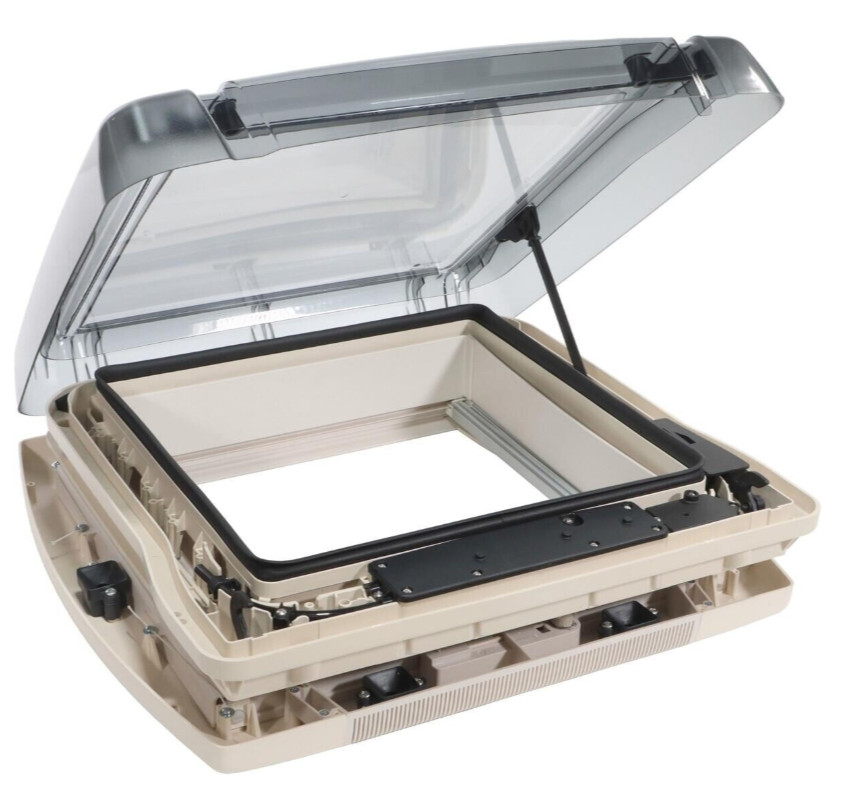 Het dakluik is voorzien van een vliegenhor en verduistering in plissé uitvoering.