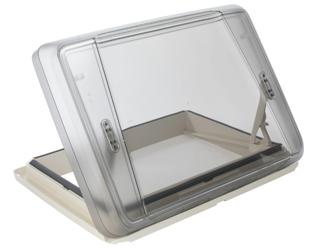 Het dakluik is voorzien van een plissé combirollo en heeft een automatisch vergrendel en ontgrendel systeem.
