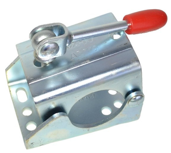 Neuswielklem met inklapbare hendel. Voor het vastzetten van de neuswiel. Geschikt voor neuswielen van 60mm. Maximaal draaggewicht 500 kg.
