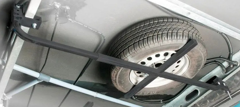 Deze flexibel inzetbare reservewielhouder kan onafhankelijk onder het chassis bevestigd worden. Hierdoor kunnen zowel het rangeersysteem als het reservewiel gemonteerd worden.