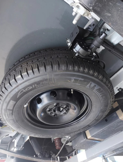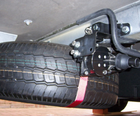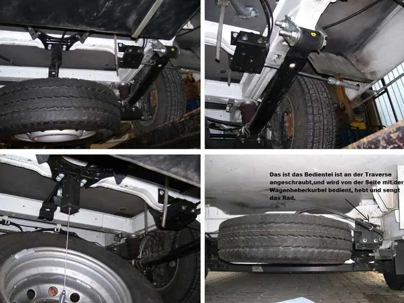 Reservewielhouder voor de Fiat Ducato X250 290 vanaf bouwjaar 2006. Bespaar ruimte in uw garage en monteer deze reservewielbeugel onder uw camper.