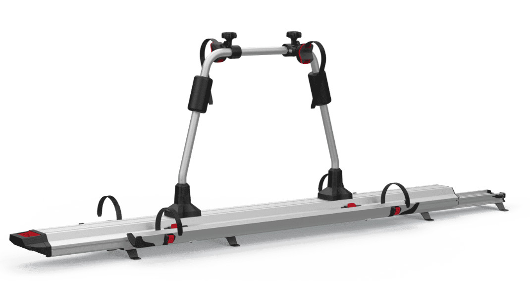 Fiamma Carry-Bike Garage Slide Deluxe – Uitschuifbaar fietsenrek voor de achtergarage voor gemakkelijk laden. Deze fietsendrager is ontworpen voor montage in de achtergarage van campers en schuift naar buiten voor eenvoudig laden en lossen. Het rek kan tot 154 cm worden uitgeschoven, waardoor fietsen buiten de garage kunnen worden geplaatst en vervolgens gemakkelijk kunnen worden ingetrokken om ruimte te besparen.
