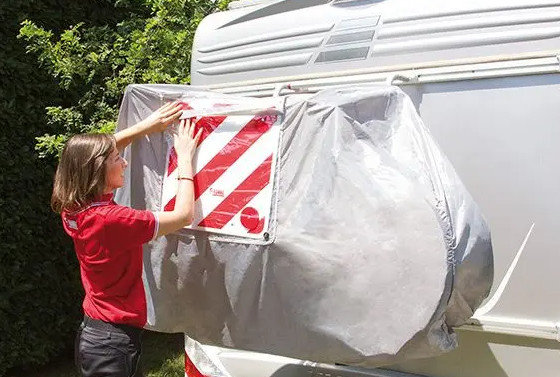 Fietshoes voor de achterwand van een caravan of camper.
