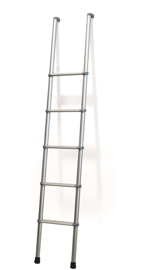 Aluminium ladder uitgerust met een 15° hellende trap voor binnen in alkoof campers of voor caravans met stapelbed.