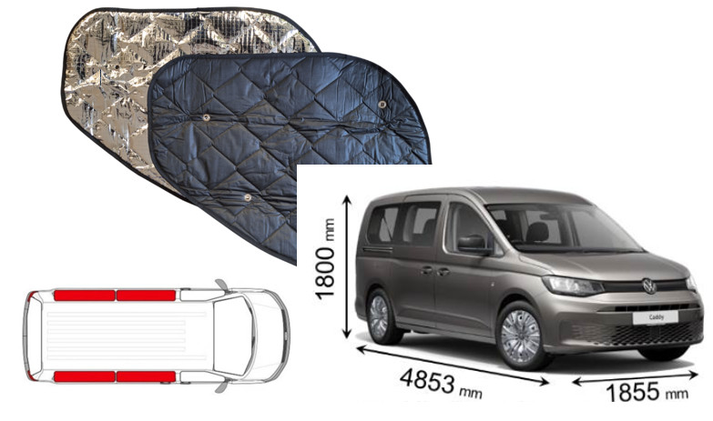 Raamisolatie Volkswagen Caddy 2004-2020 (4 delig Woonruimte) Lange Wielbasis Black Line
