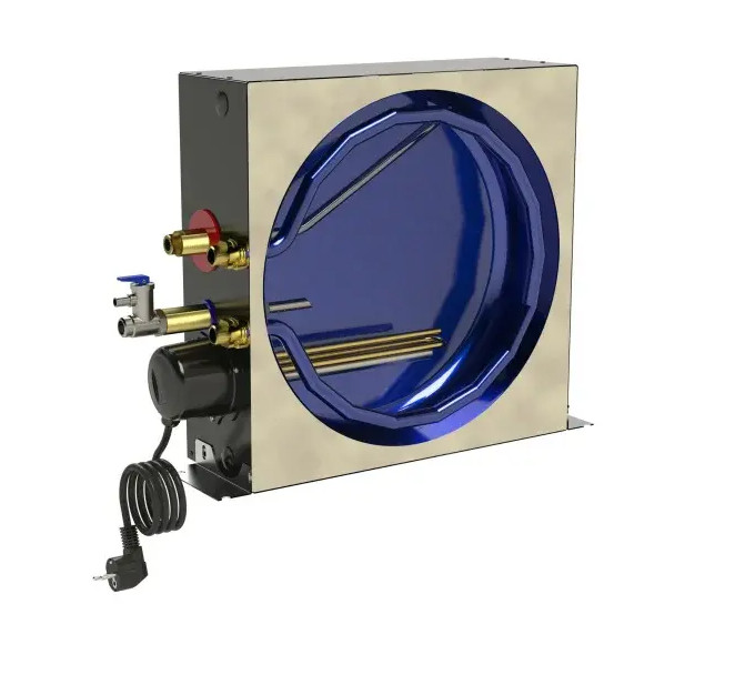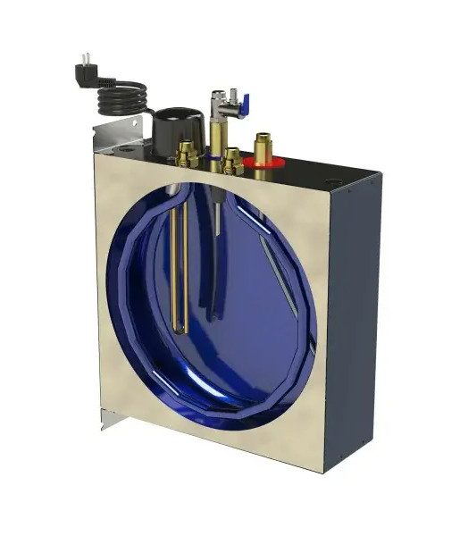 RVS Boiler 20 liter. De energie wordt geleverd door een warmtewisselaar die moet worden aangesloten op het koelcircuit van de motor en door een elektrische weerstand van 1250W bij 230V.