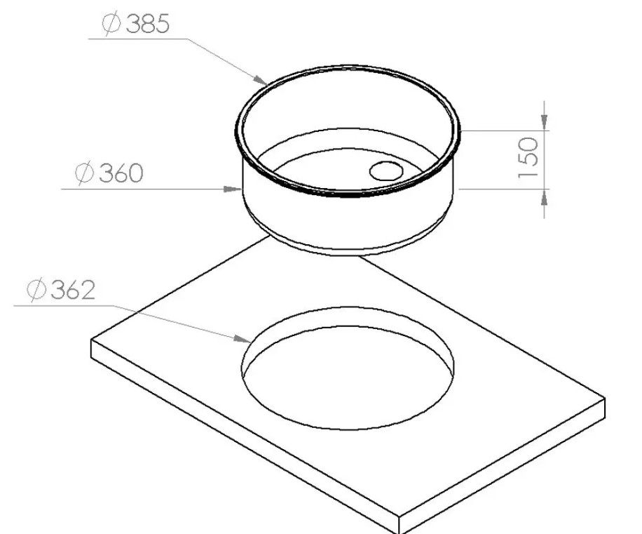 Navy Load Spoelbak Rond RVS Ø36–Ø38,5 H15 NL.30015