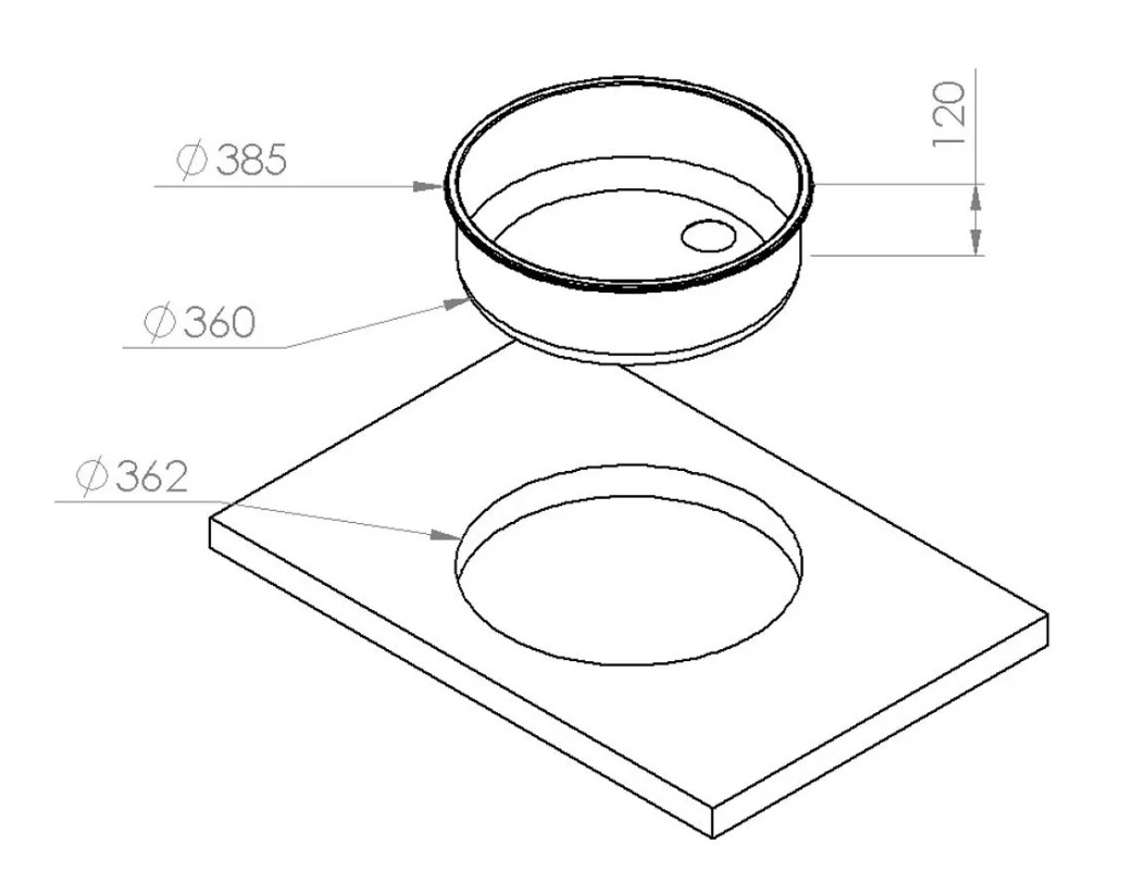 Navy Load Spoelbak Rond RVS Ø36–Ø38,5 H12 NL.30016