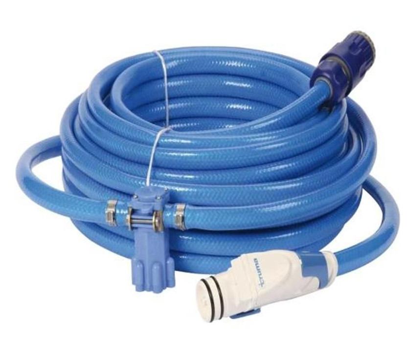 Waterslang van 15mtr (food quality) met aansluitingen van Ultraflow voor een rechtstreekse aansluiting op de waterleiding van de camping.